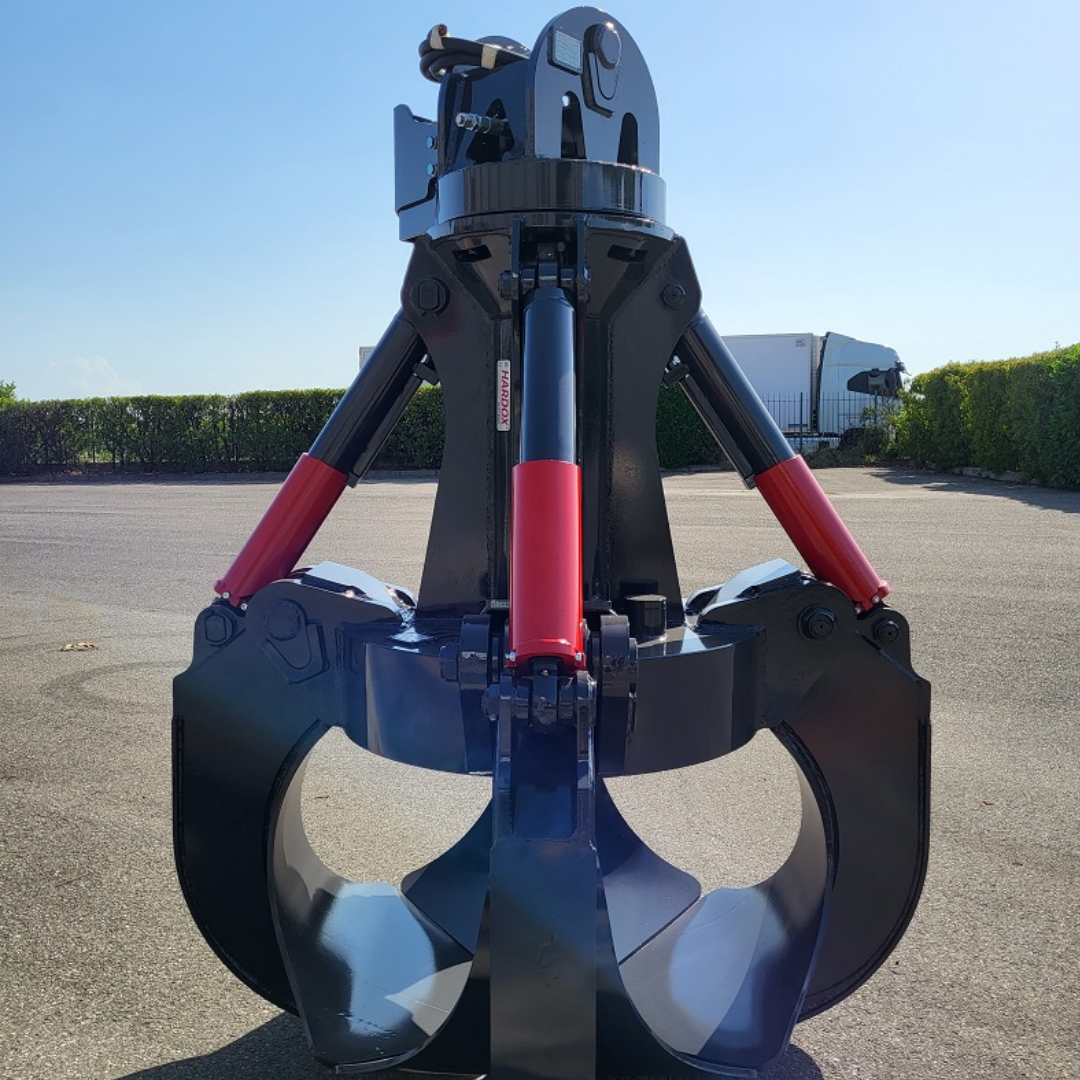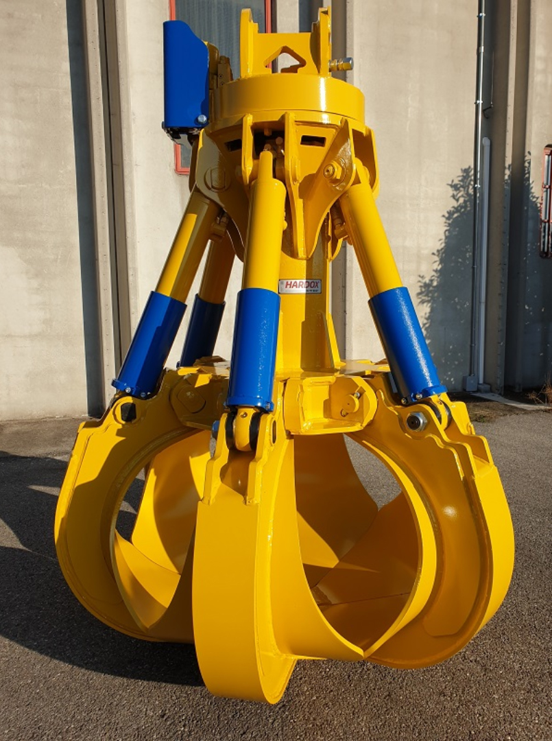 Οι αρπάγες κατασκευάζονται από χάλυβα υψηλής ποιότητας, όπως HARDOX 400 και WELDOX 700, εξασφαλίζοντας εξαιρετική αντοχή και μακροχρόνια χρήση. Οι άκρες των λεπίδων είναι χυτές με σκληρότητα 570-600 HB σε όλο το πάχος, προσφέροντας εξαιρετική ανθεκτικότητα στη φθορά και βελτιωμένη απόδοση σε απαιτητικές συνθήκες.